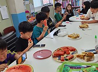 친구들과 함께 맛있는 간식를 먹었어요